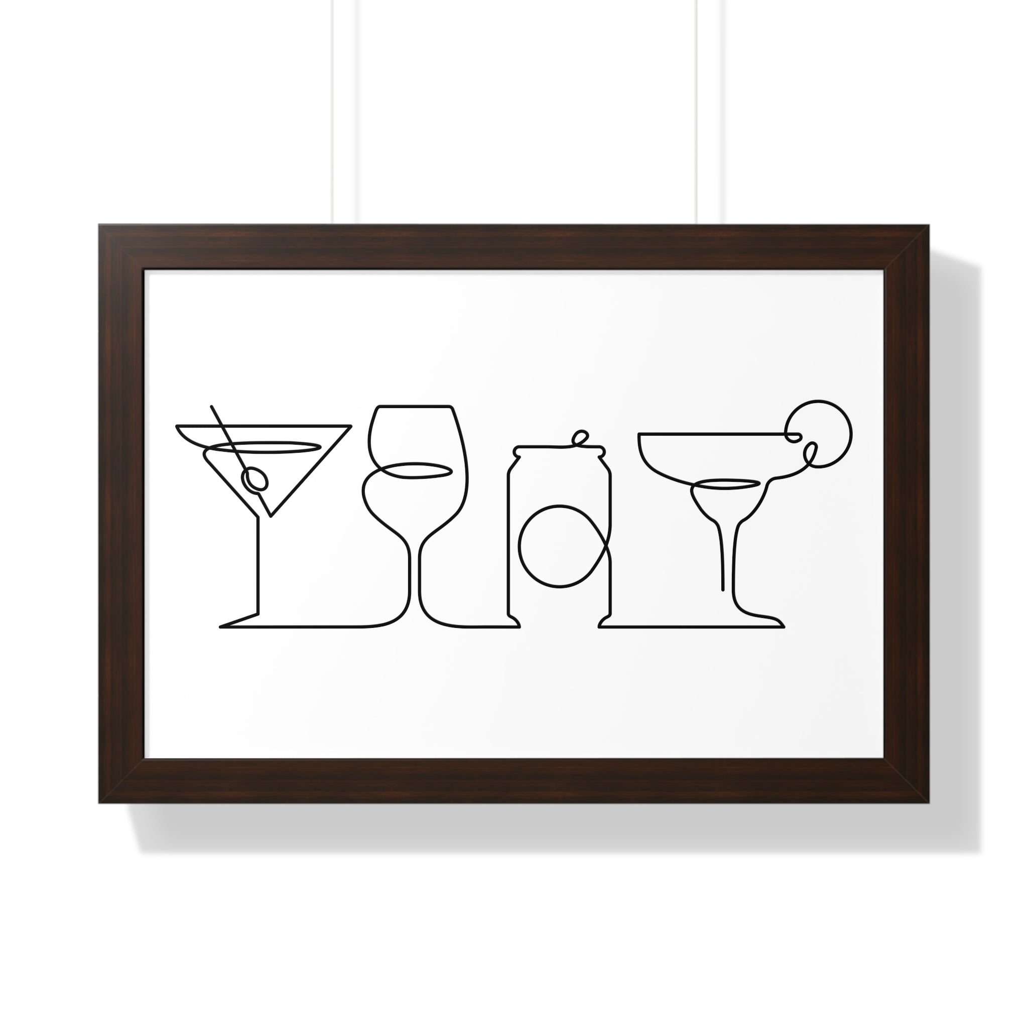 Minimalist style framed art print perfect for kitchen, dining room, or even on a bar cart. The durable wooden frame comes in black, white, or walnut and is available in 3 different sizes.