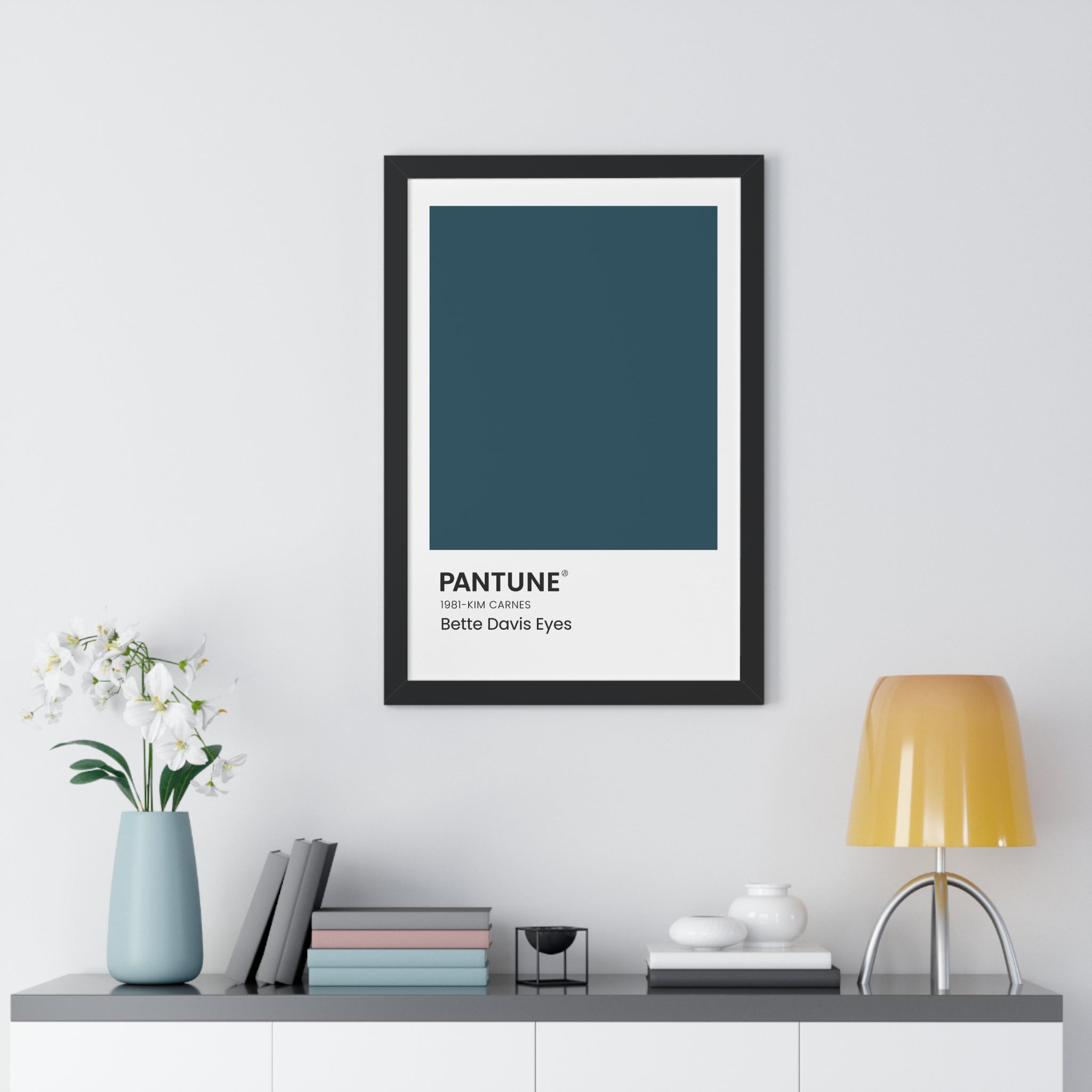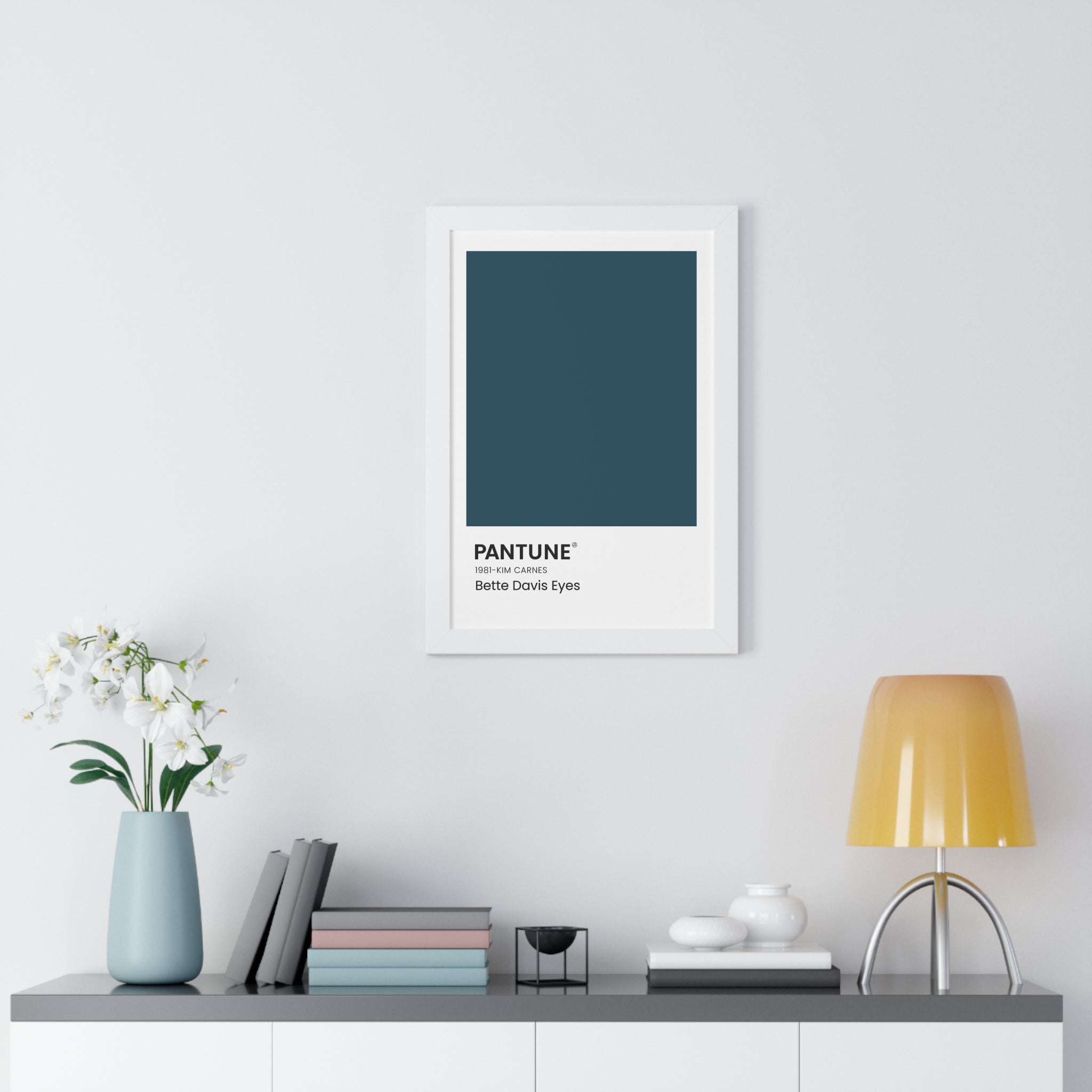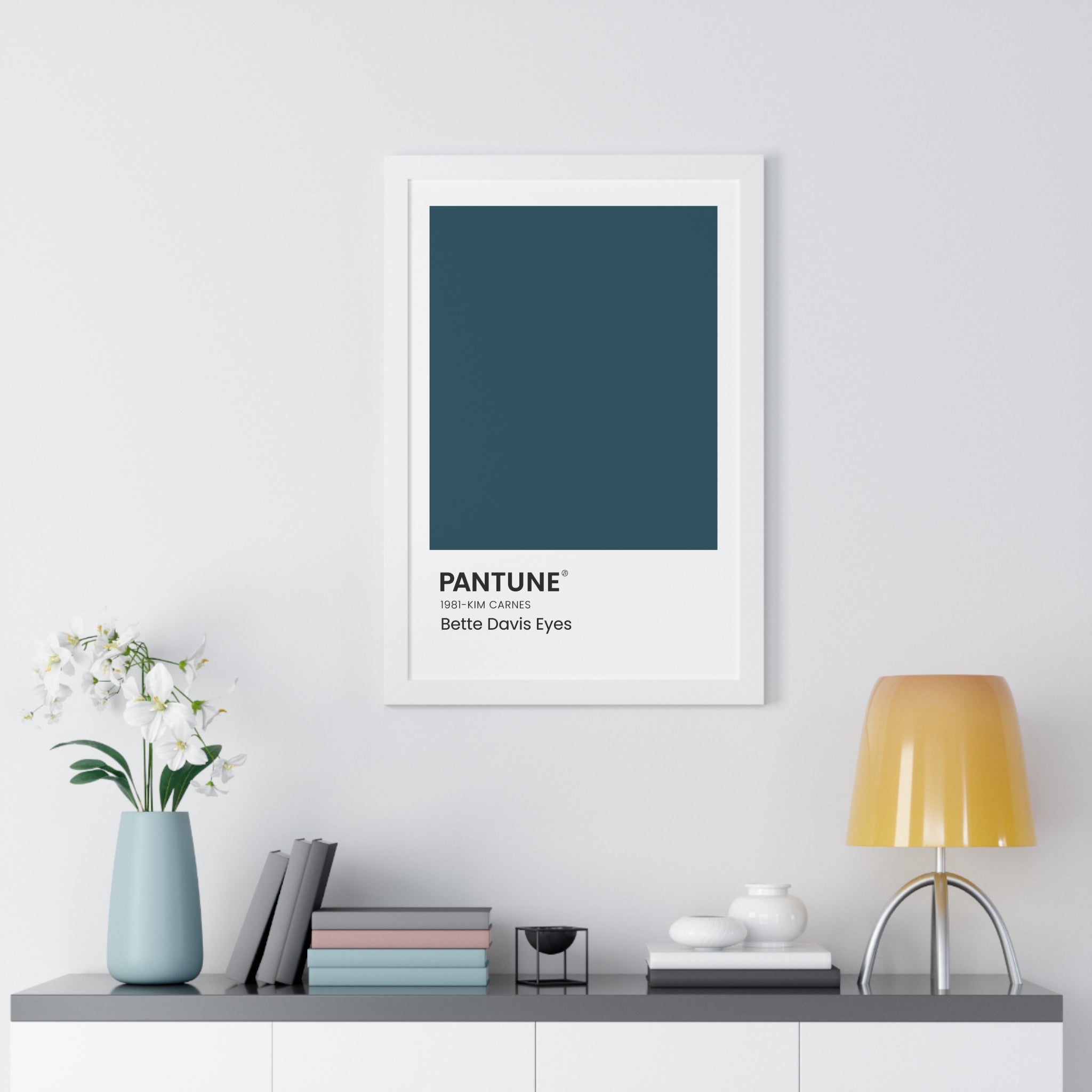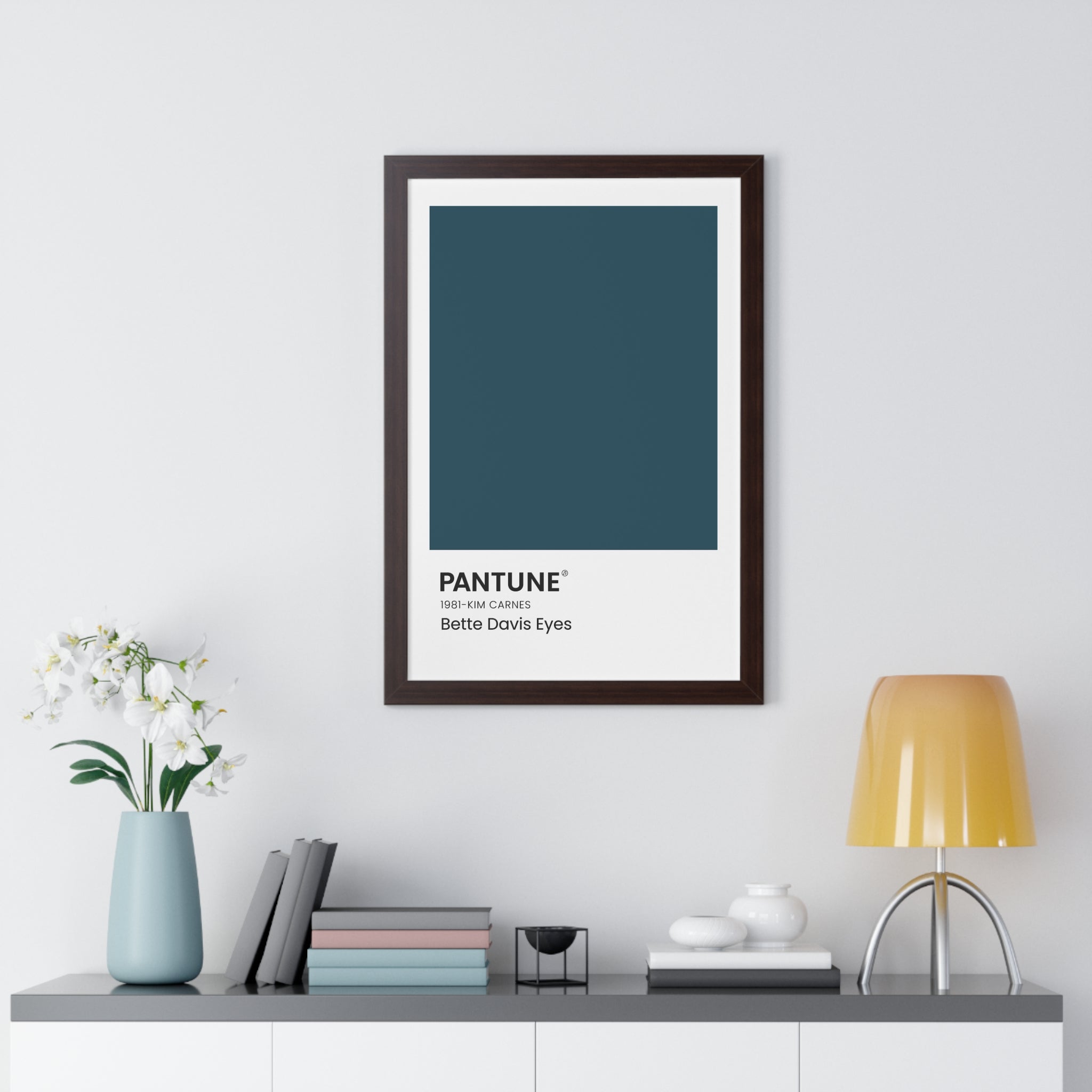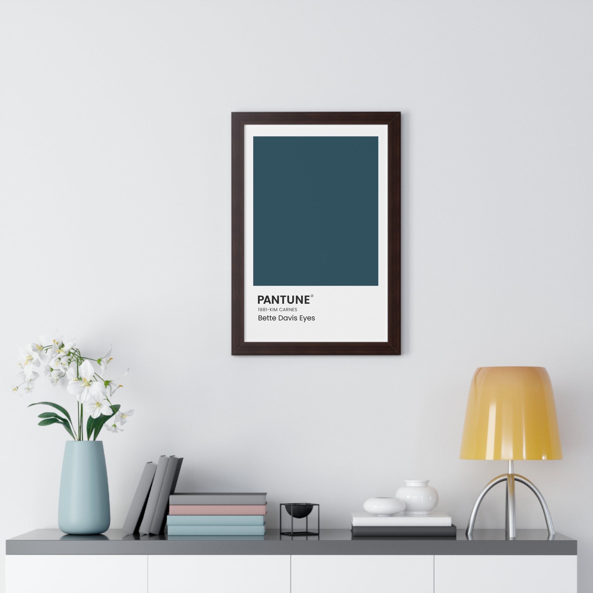 Playing on the famous Pantone colors, these wall art color swatches add a bold pop of color to a space with a subtle nod to a favorite song. The text in the corner references the name of the classic song that inspired the color chosen, the band or artist, and the year the song was released. The durable wooden frame comes in black, white, or walnut and is available in 3 different sizes.