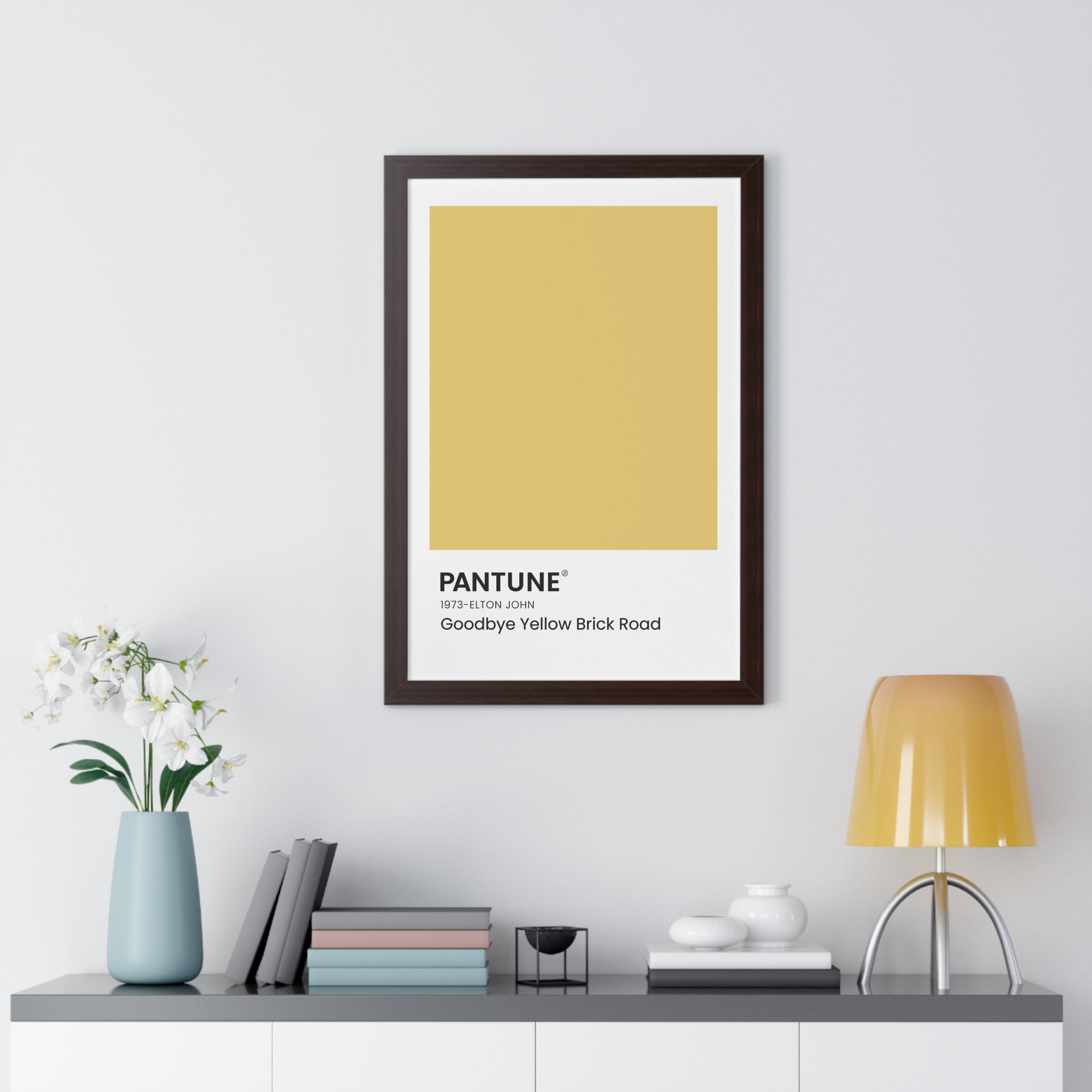 Playing on the famous Pantone colors, these wall art color swatches add a bold pop of color to a space with a subtle nod to a favorite song. The text in the corner references the name of the classic song that inspired the color chosen, the band or artist, and the year the song was released. The durable wooden frame comes in black, white, or walnut and is available in 3 different sizes.