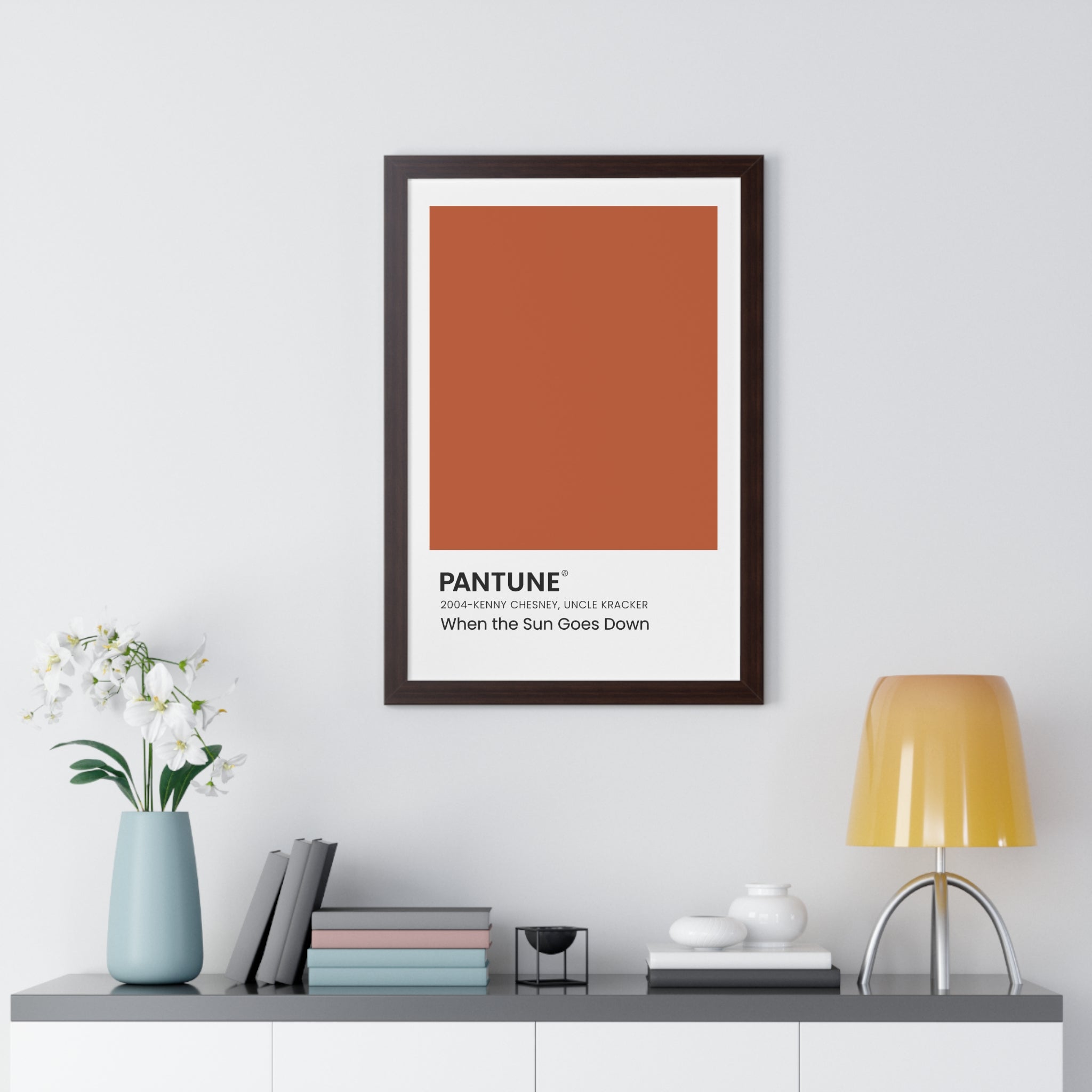 Playing on the famous Pantone colors, these wall art color swatches add a bold pop of color to a space with a subtle nod to a favorite song. The text in the corner references the name of the classic song that inspired the color chosen, the band or artist, and the year the song was released. The durable wooden frame comes in black, white, or walnut and is available in 3 different sizes.